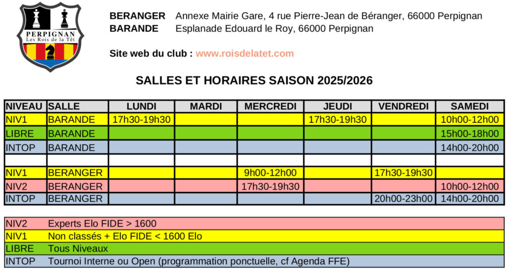 Club d'échecs de Perpignan, affilié à la Fédération Française des Échecs